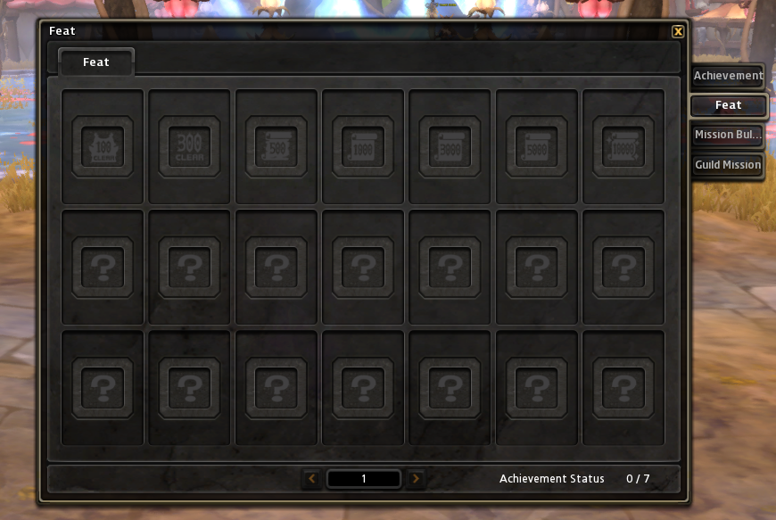 B. To check your quest progress, go to Menu > Achievement > Feat. There, you'll find the clear quest requirements for ranking up and the detailed count of each quest requirement.