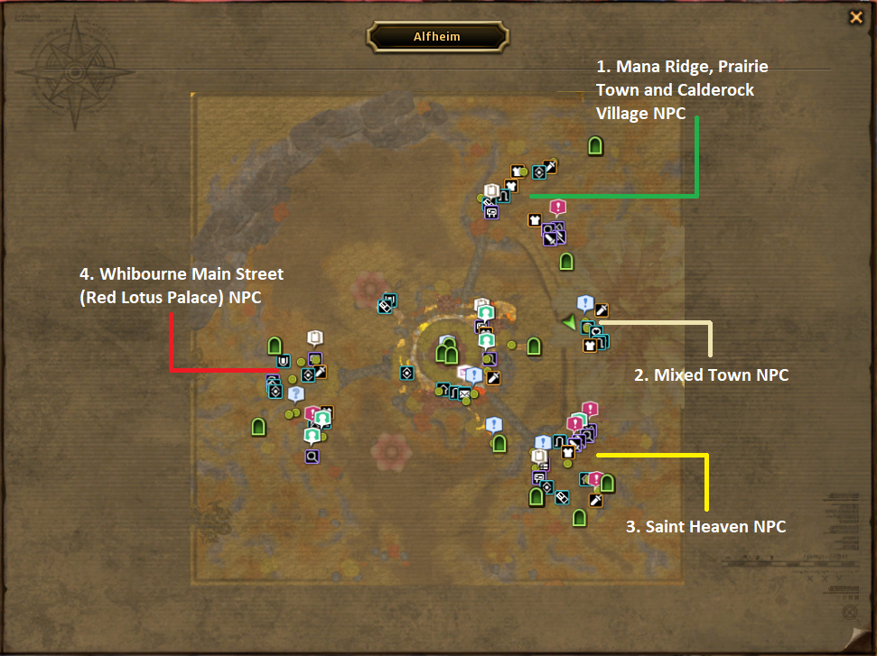 1. Trainer Lindsay 2. Warmzy 3. Blacksmith Stronghammer 4. Adventurer's Guild Member Luke 5. Adventurer's Guild Member David 6. Master Sorceress Tiana 7. Ticket Agent Itahyang 8. Guild Base Entrance Guard 9. Pathfinder Zephyros 10. Sorceress Tara 11. Merchant Agave 12. Warehouse Keeper Gentleman Wang 13. Priestess of Darkness Rosetta 14. Merchant Jamihwa 15. Palace Attendant Jeokwolyang 16. Master Sorceress Cynthia |