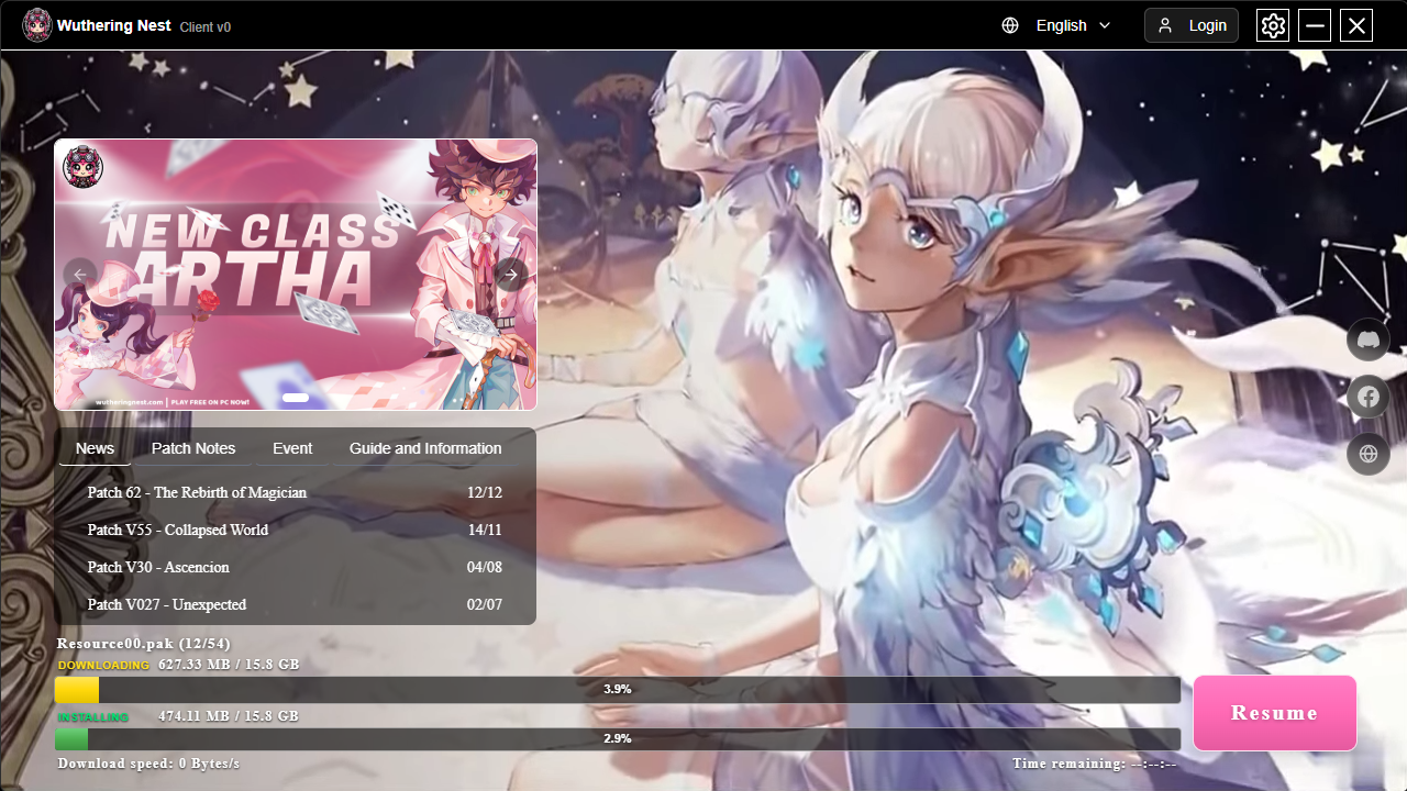 The game download and installation process now supports pause & resume - you can close the launcher at any time and continue your progress later without having to start over from the beginning.